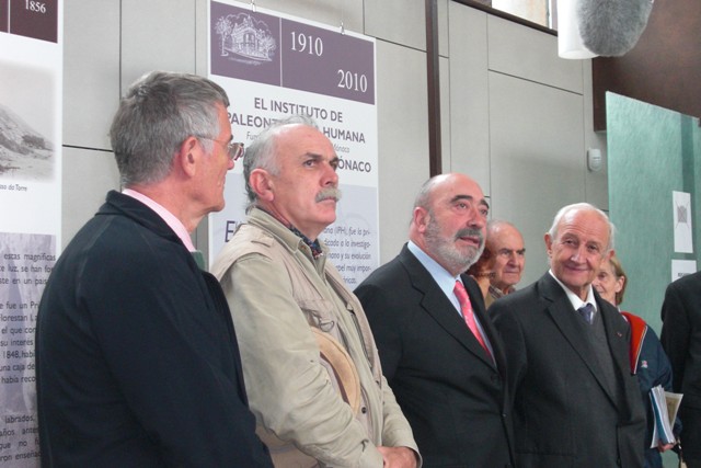 Inauguration de l’exposition par (de gauche à droite) l’Ambassadeur de la Principauté de Monaco en Espagne, le vice-Président et le Président de la Fondation Atapuerca et le Directeur de l’Institut de Paléontologie Humaine.