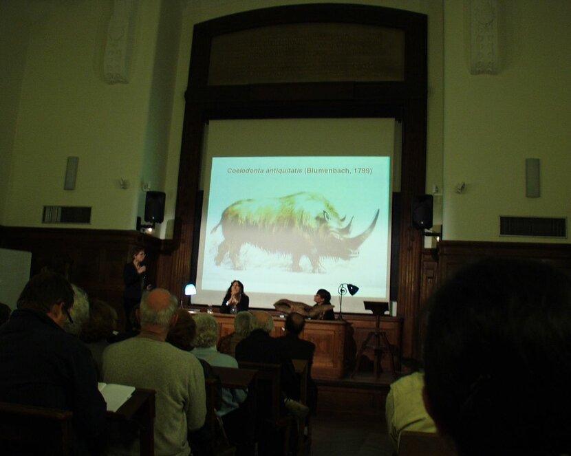 Un an après son acquisition, l’Institut de Paléontologie Humaine souhaite communiquer au plus grand nombre les premiers résultats de cette recherche. Dans ce but, une conférence, animée par les chercheurs impliqués dans ce programme, est organisée lundi 17 octobre à partir de 18h30 suivie d’une lecture de textes tirés d’une littérature variée par le comédien Jacques Weber et rythmée d’intermèdes musicaux par le hautboïste Laurent Hacquard (avec un intermède au cours duquel le public pourra aller voir le spécimen installé dans la bibliothèque de l’Institut). Le mercredi qui suit, 2 ateliers pédagogiques (à 14h et 16h) seront organisés à destination des 8-12 ans sur le thème des animaux quaternaires, de leurs relations avec l’homme, des variations climatiques et de l’extinction de certaines espèces.